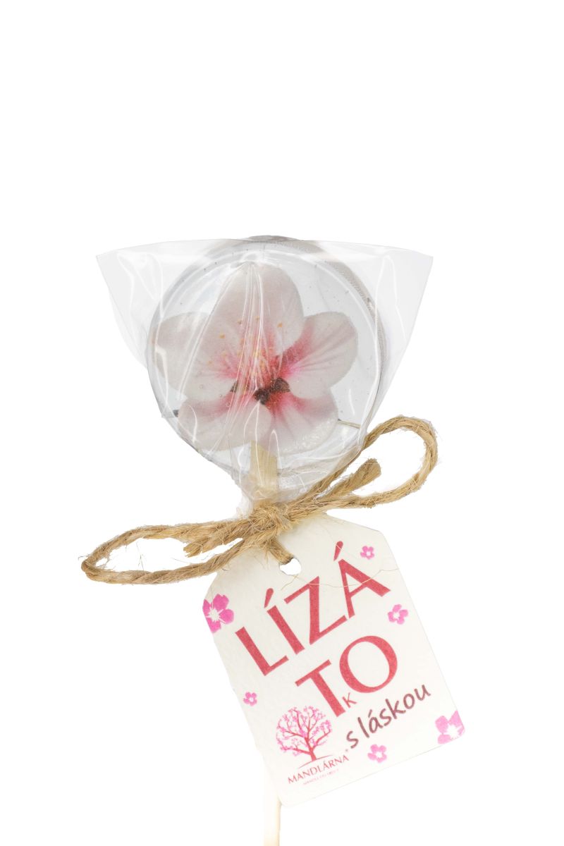 Smlsněte si na parádnickém lízátku s květem mandloně na jedlém papíře.