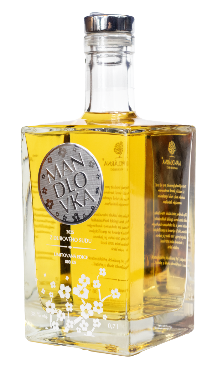 Zrání v dubovém sudu zbarvilo Mandlovku do světle zlatavého odstínu medu. Mandlovka vás ohromí jemnou jiskrou a průzračností, která pableskuje zevnitř prémiové skleněné lahve vyvedené v hranatějších konturách. Bytelné dno a stěny lahve posouvá směrem k absolutní špičce mezi prémiovými lahvemi skleněný uzávěr se zábrusem, který doplňuje vysoce lesklý kovový top. Unikátní je také plaketa z leštěného hliníku s embosovaným názvem Mandlovky. Dubová Mandlovka vás oslní chutí i barvou, ať už si ji budete vychutnávat sami nebo ve společnosti.