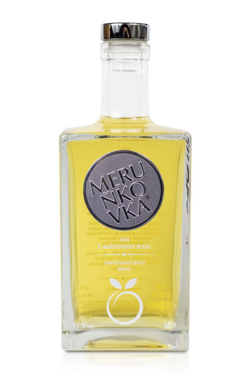 Vychutnejte si troufalou jemnost Meruňkovky, která zrála 8 měsíců v akátovém sudu po Mandlovce.